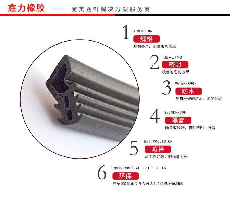 1. 常用材料是三元乙丙橡膠、采用擠出微波硫化等發(fā)泡工藝擠出成型,發(fā)泡異形膠條、表面光潔美觀,具有良好的彈性和抗壓縮變形。